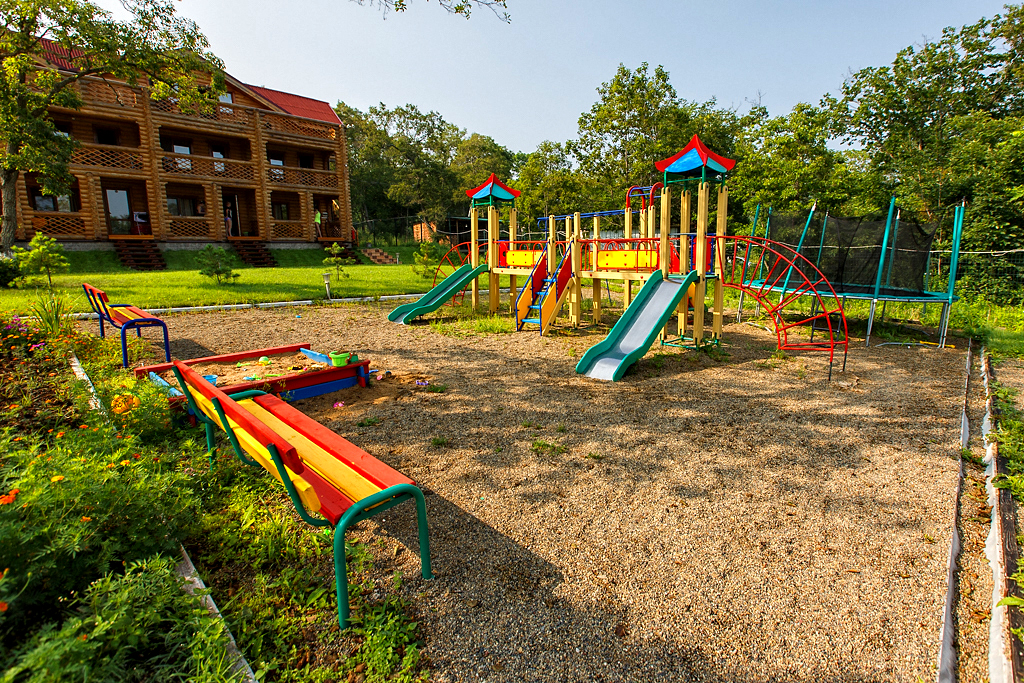 Кстати, дополнительно Вас порадует расположение самой площадки. Ее прекрасно видно буквально с любого места базы. Будете ли Вы плавать в бассейне или жарить шашлыки, Ваш ребенок никогда не пропадет из поля Вашего зрения.