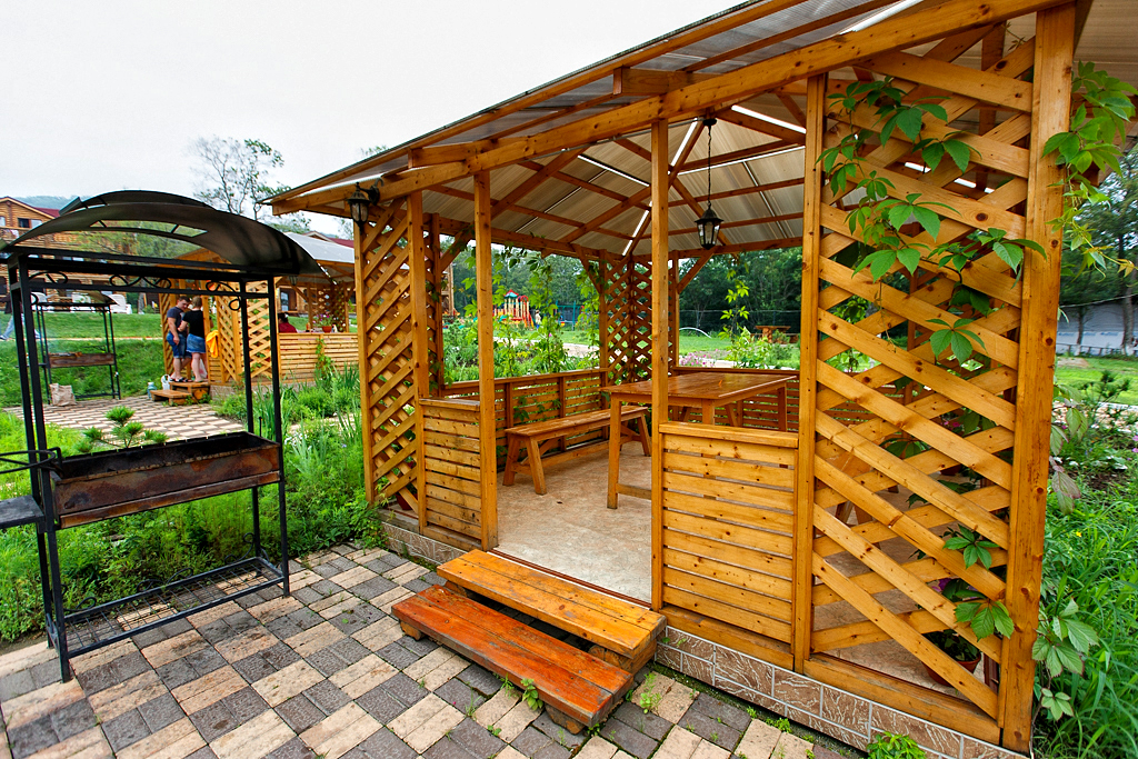 Летние беседки, рассчитаны на 6 чел., со светом и мангальной зоной стоимость: 500 руб / час за каждую.