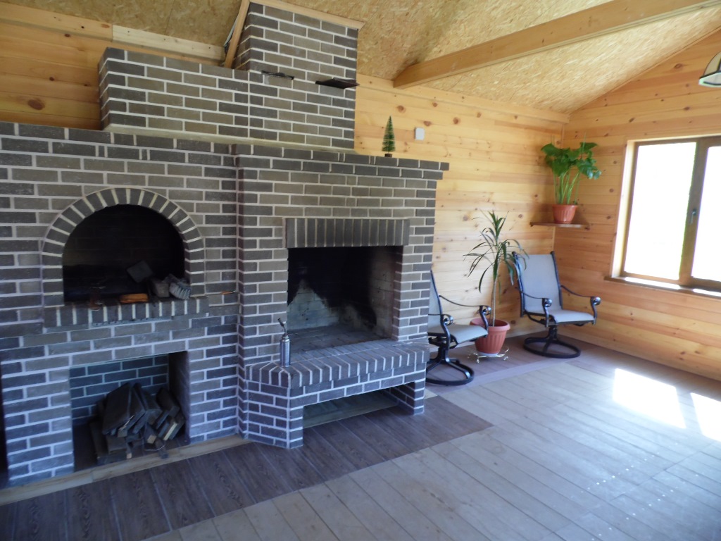 Зимняя беседка с настоящим камином и мангальной зоной, холодильник, плитка для приготовления пищи, есть холодная и горячая вода., стоимость: 10000 руб / день.